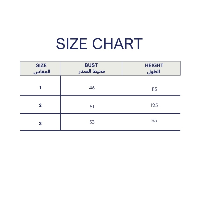 متوفر بـ 3 مقاسات مختلفة، علشان تلاقي بسهولة المقاس اللي يناسب عمر بنتك.