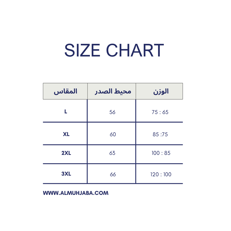 المقاسات: متوفرة من لارج حتى 3 إكس لتناسب مختلف الأجسام.