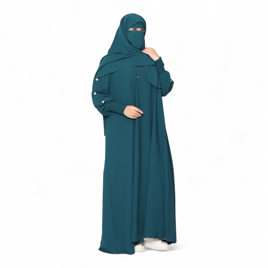 - طرحة + نقاب لتكملة الإطلالة المحتشمة.