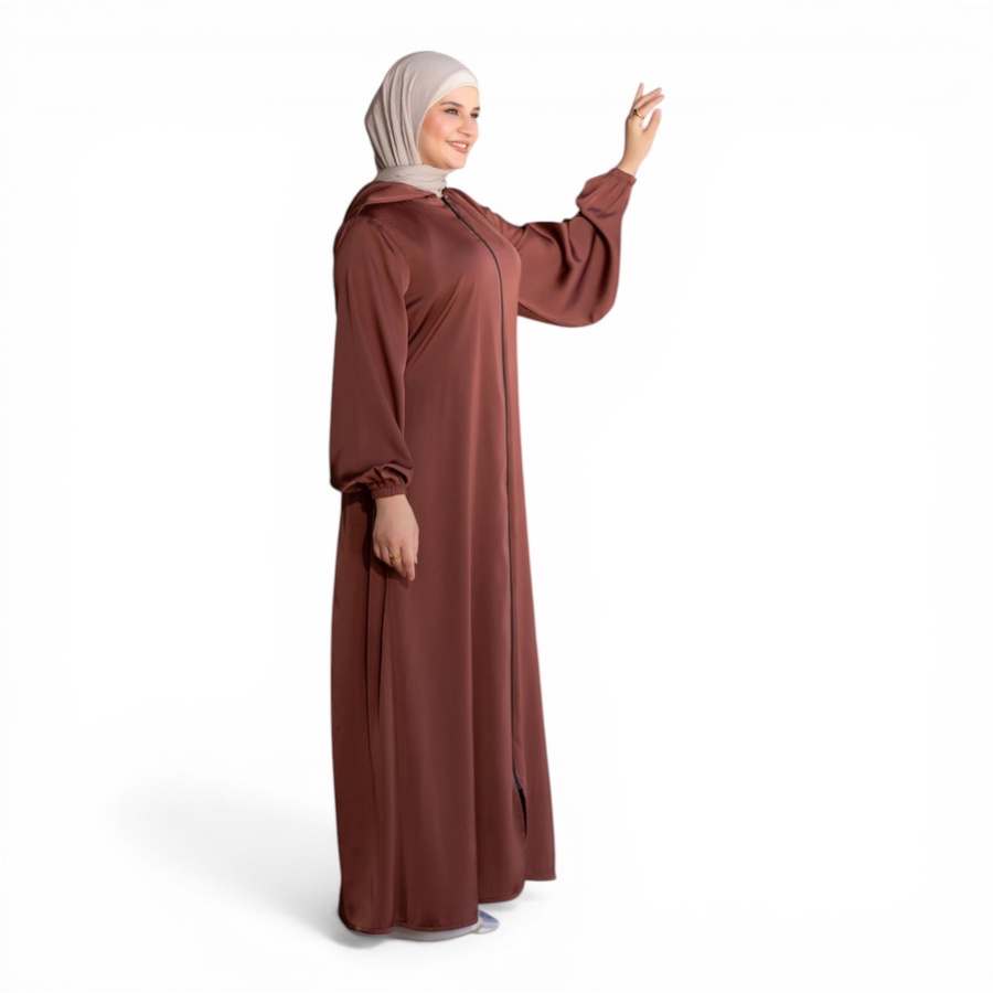 – الخامة: حرير تيك توك مستورد، ناعم ولمعته خفيفة تدّي فخامة