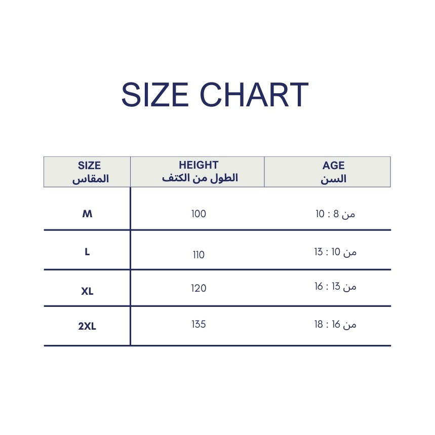 المقاسات: متوفر من ميديم حتى 2 إكس ليناسب مختلف الأعمار.