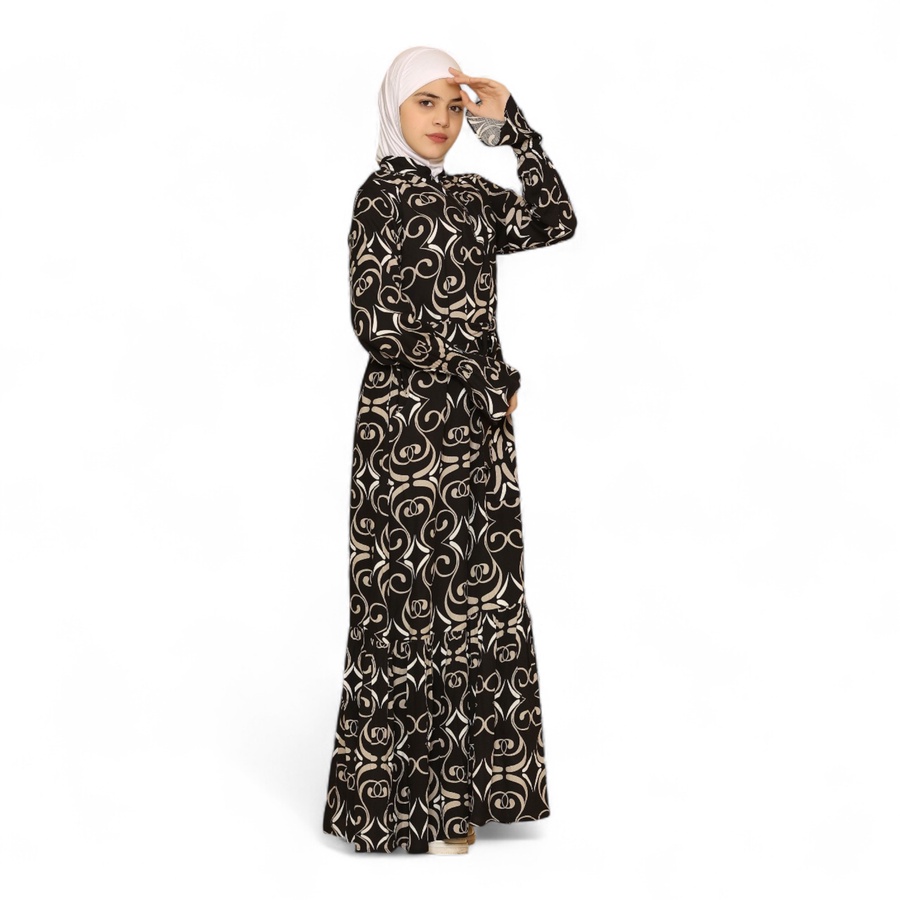 فستان بناتي مميز بخامة سوفت مشجر ناعمة، مريحة على البشرة وتضفي لمسة أنثوية ناعمة.