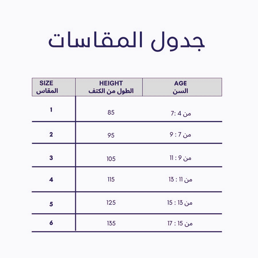 - المقاسات: متوفر من 4 سنوات حتى 17 سنة ليناسب كل الأعمار.