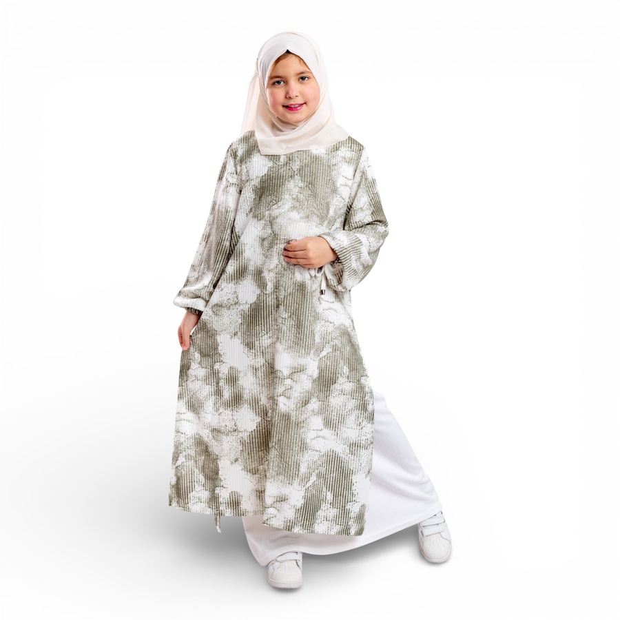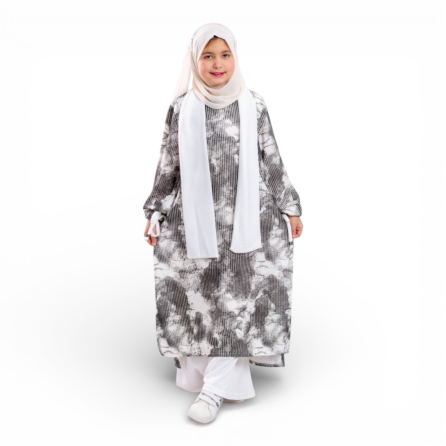 – الطقم مكوّن من 3 قطع: بلوزة + جيبة + سكارف