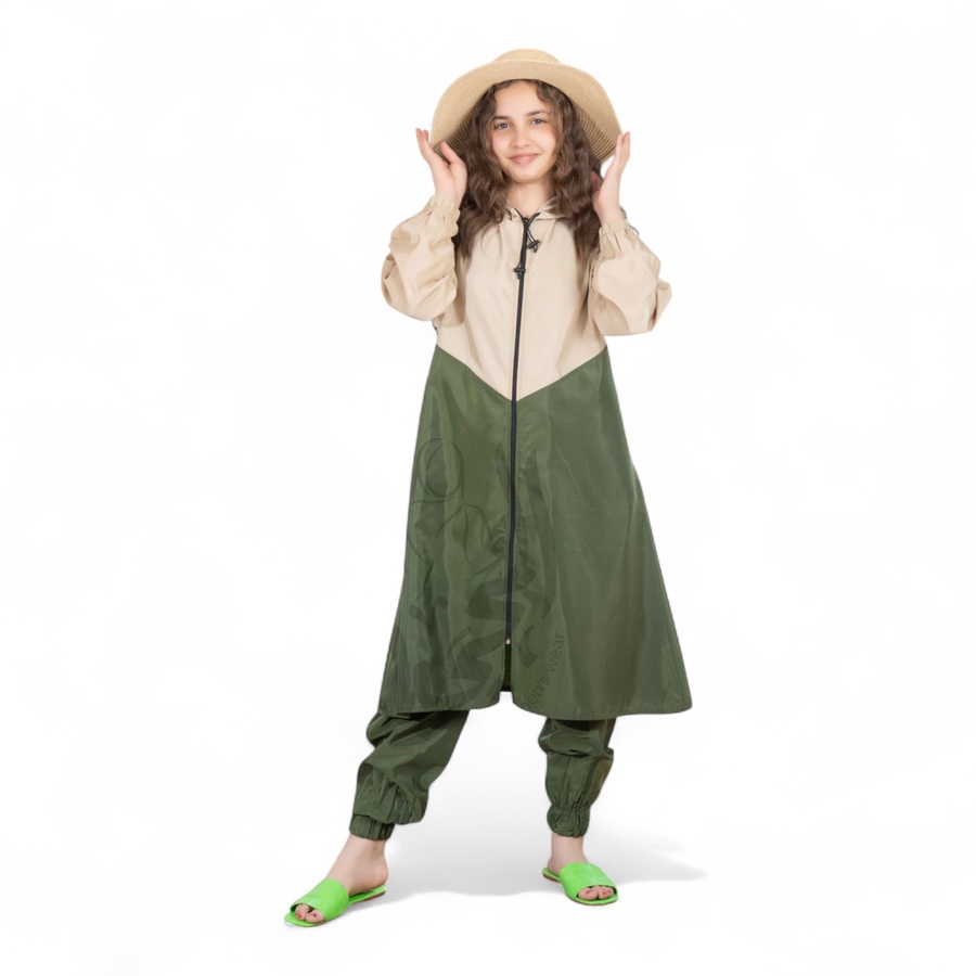 - التصميم: مكون من 3 قطع أنيقة (تونيك + بنطلون + بونيه للرأس) لتوفير تغطية مثالية وحرية حركة.