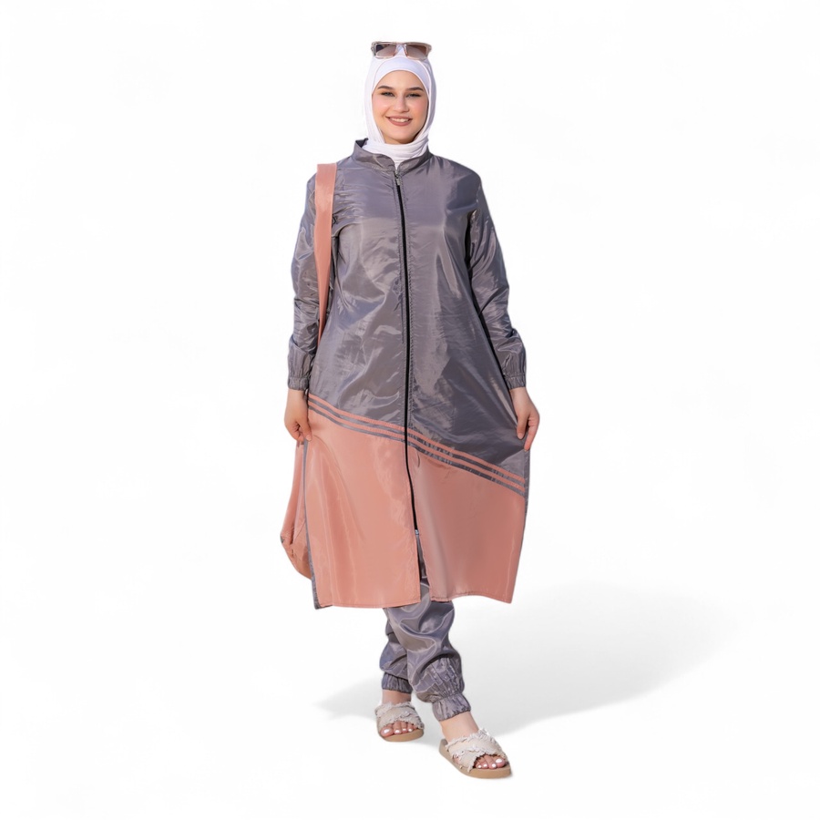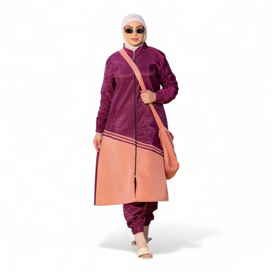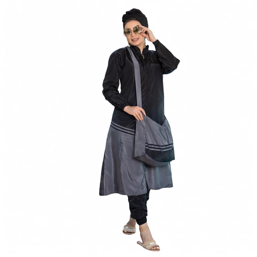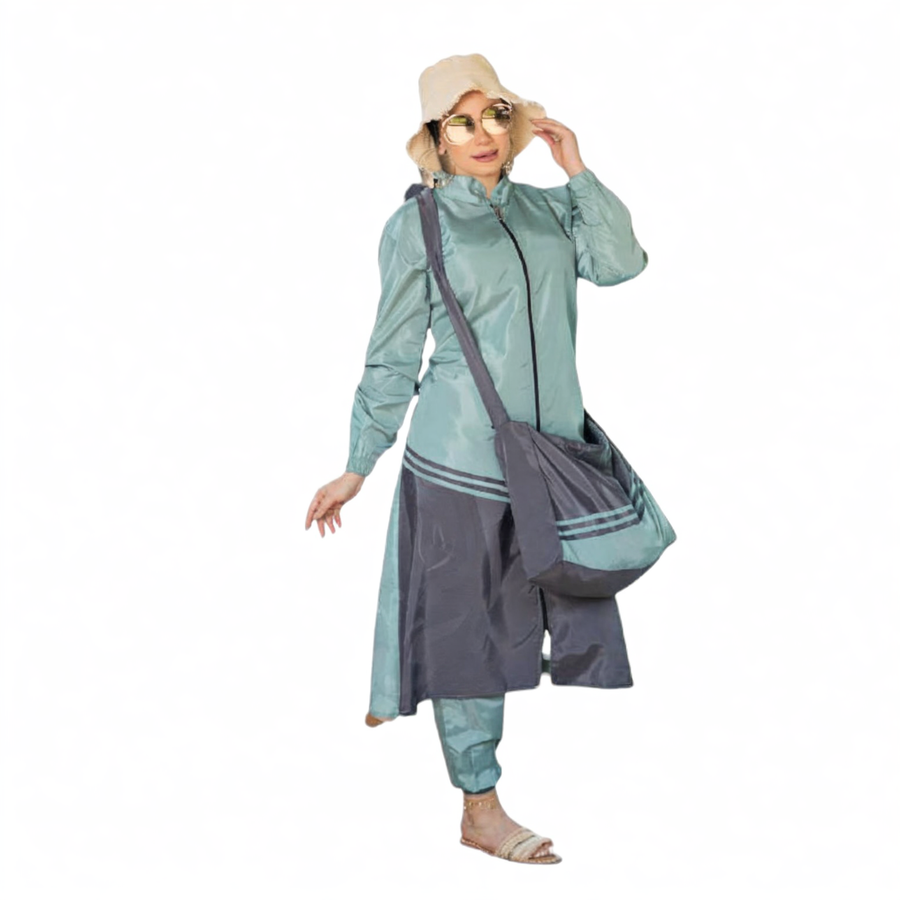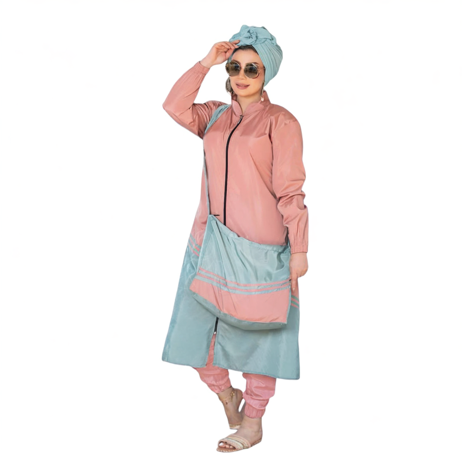 بوركيني مكون من 4 قطع تونيك +بنطلون+ شنطة ووتر بروف + بونيه للشعر