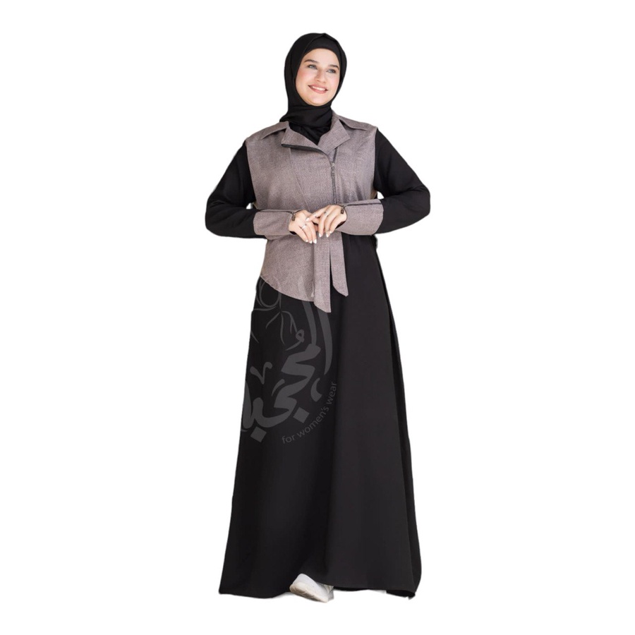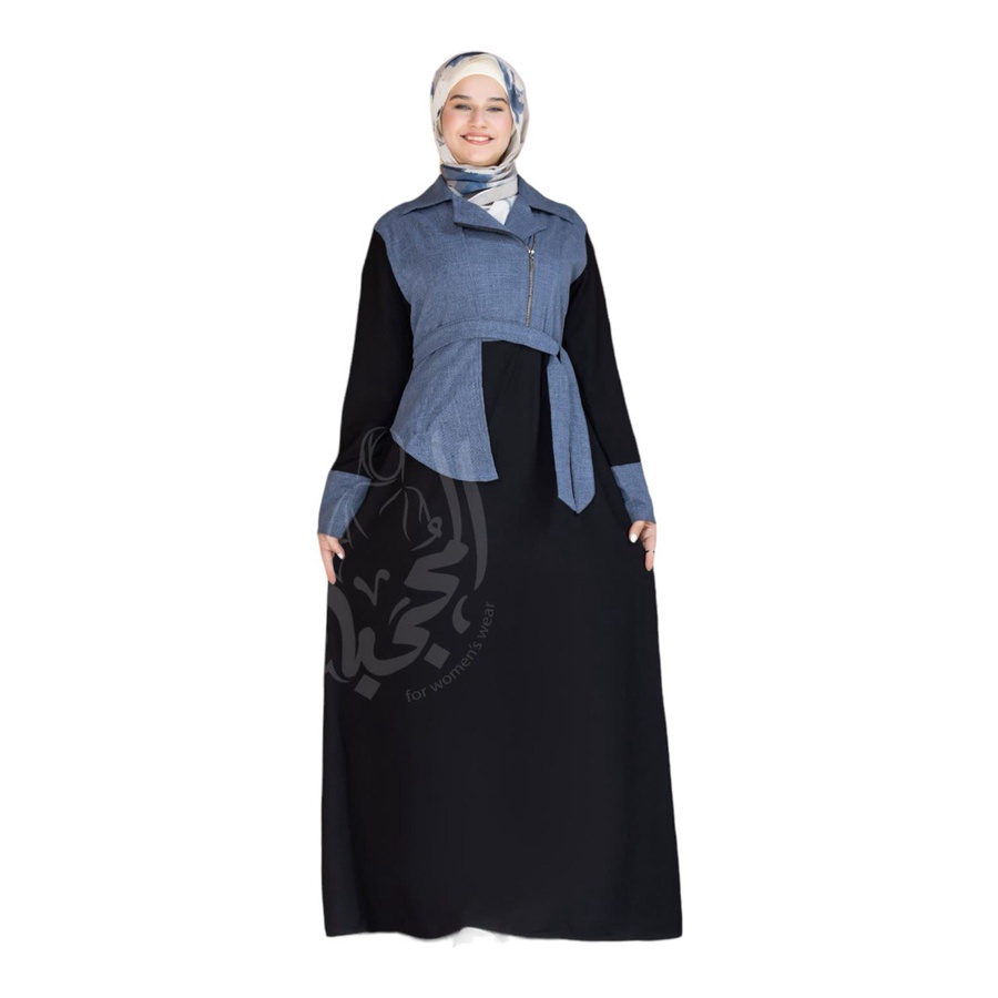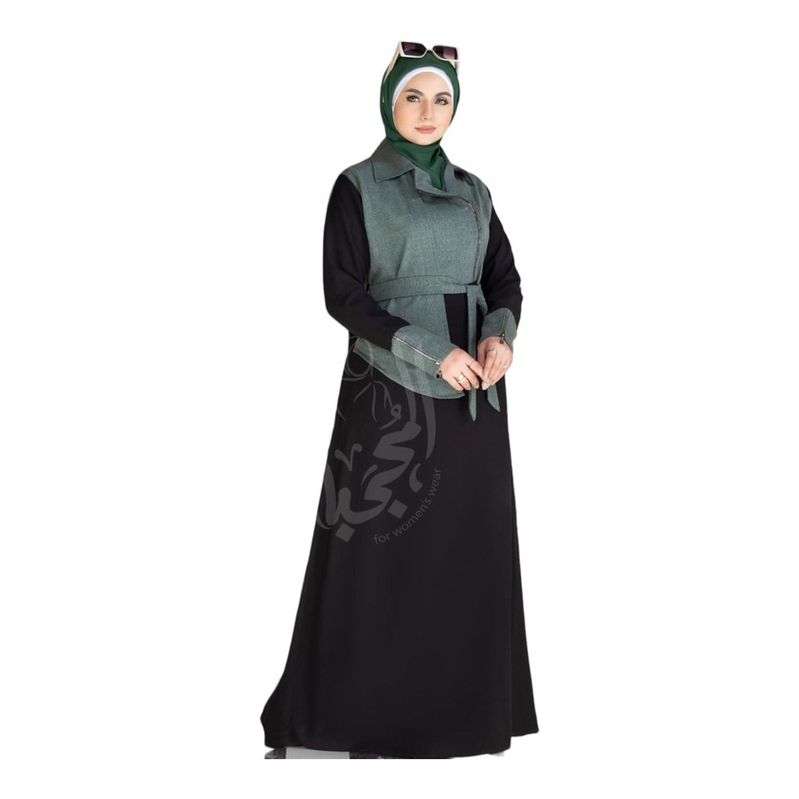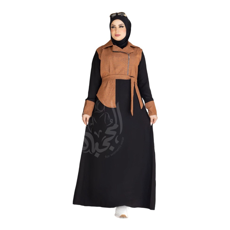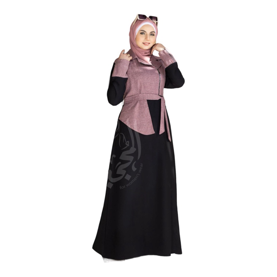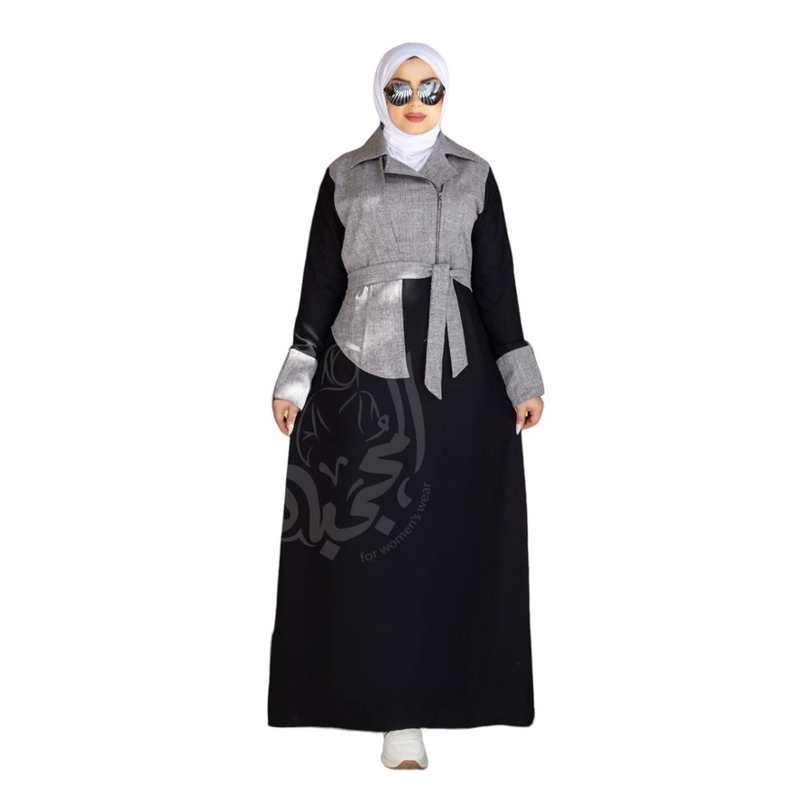 عباية كريب بتطعيم كتان وحزام من الوسط