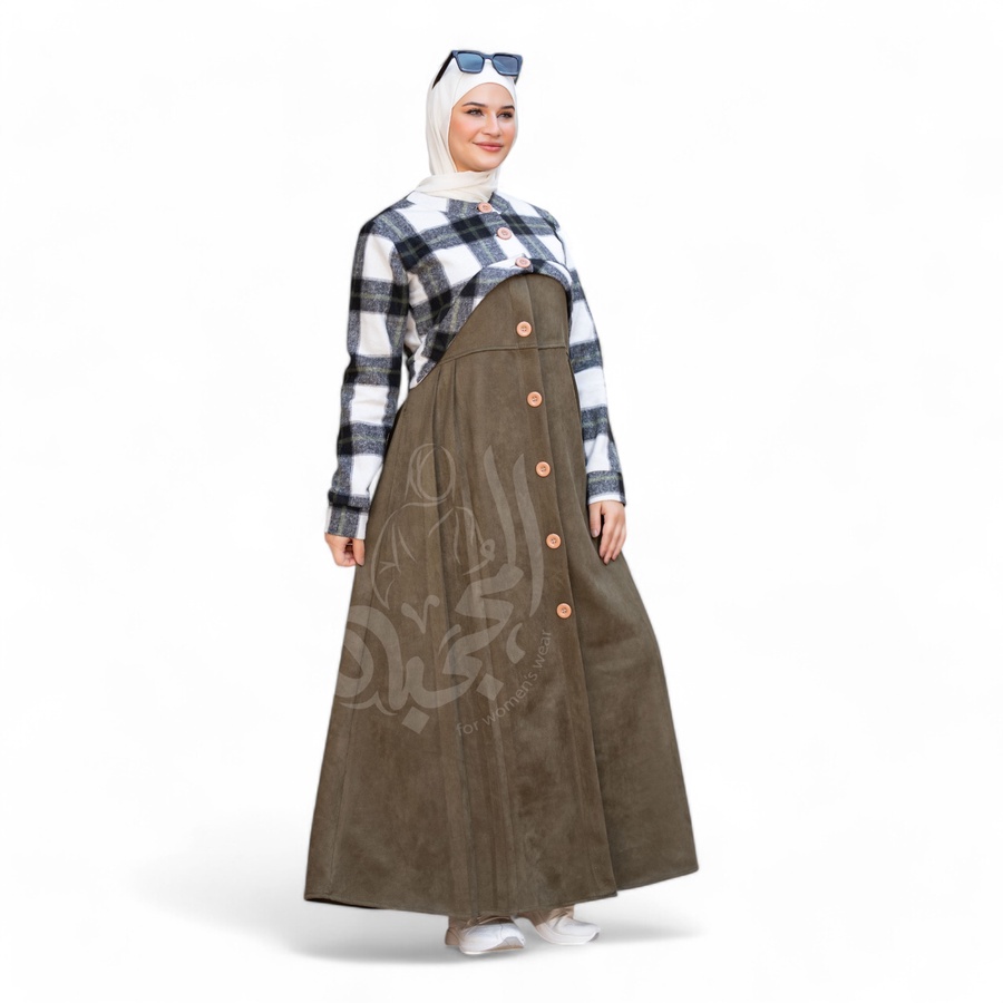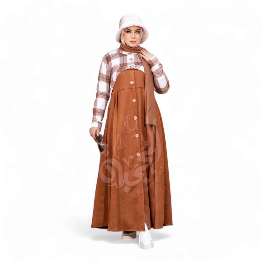 - الفستان مصنوع من شامواه سويدي مستورد، يتميز بنعومته الفائقة ولمسته الفاخرة.