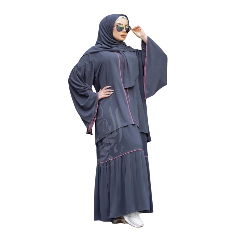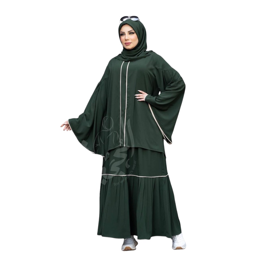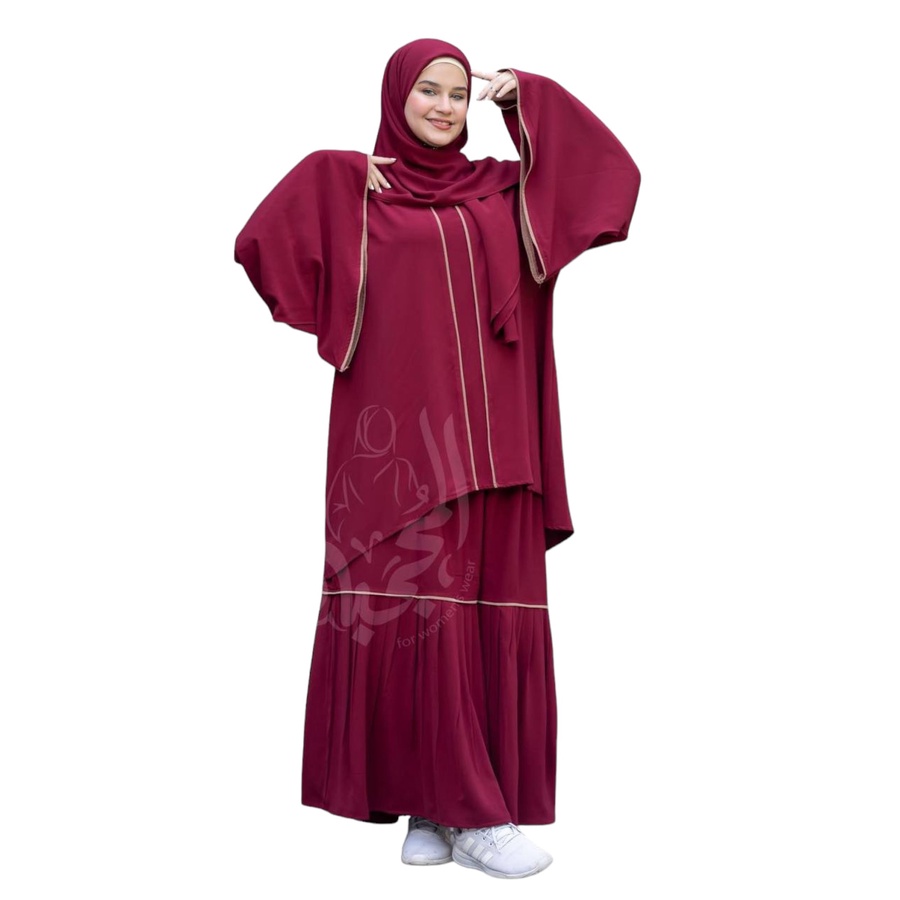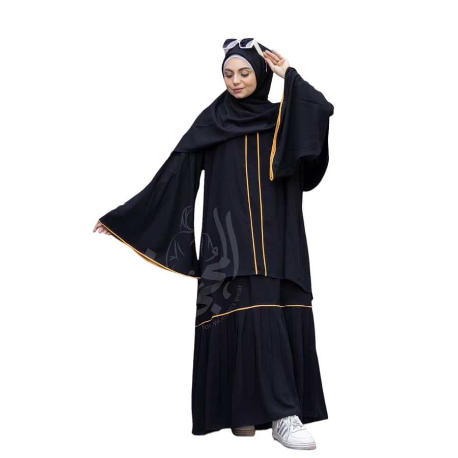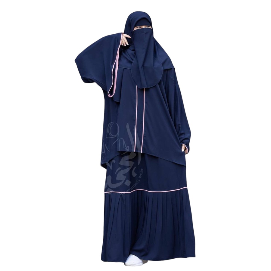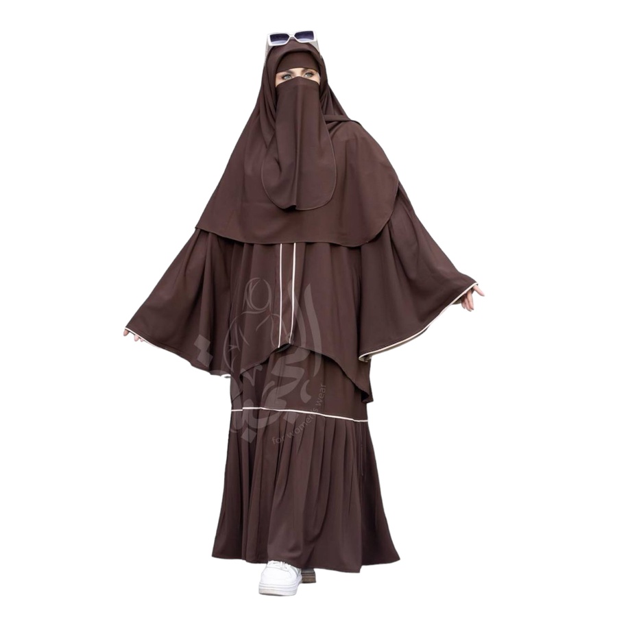 مكون من ادناء + جيبة + خمار (120سم*120سم) + نقاب + شريطة للجبهة