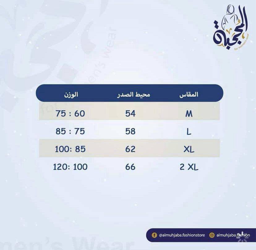 لضمان المقاس المناسب يرجى اختيار المقاس بناء على جدول المقاسات